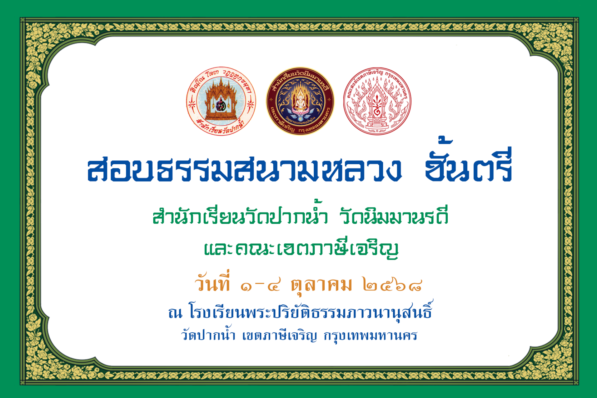 นักธรรมชั้นโท-เอก สำนักเรียนวัดปากน้ำ ประจำปี ๒๕๖๘