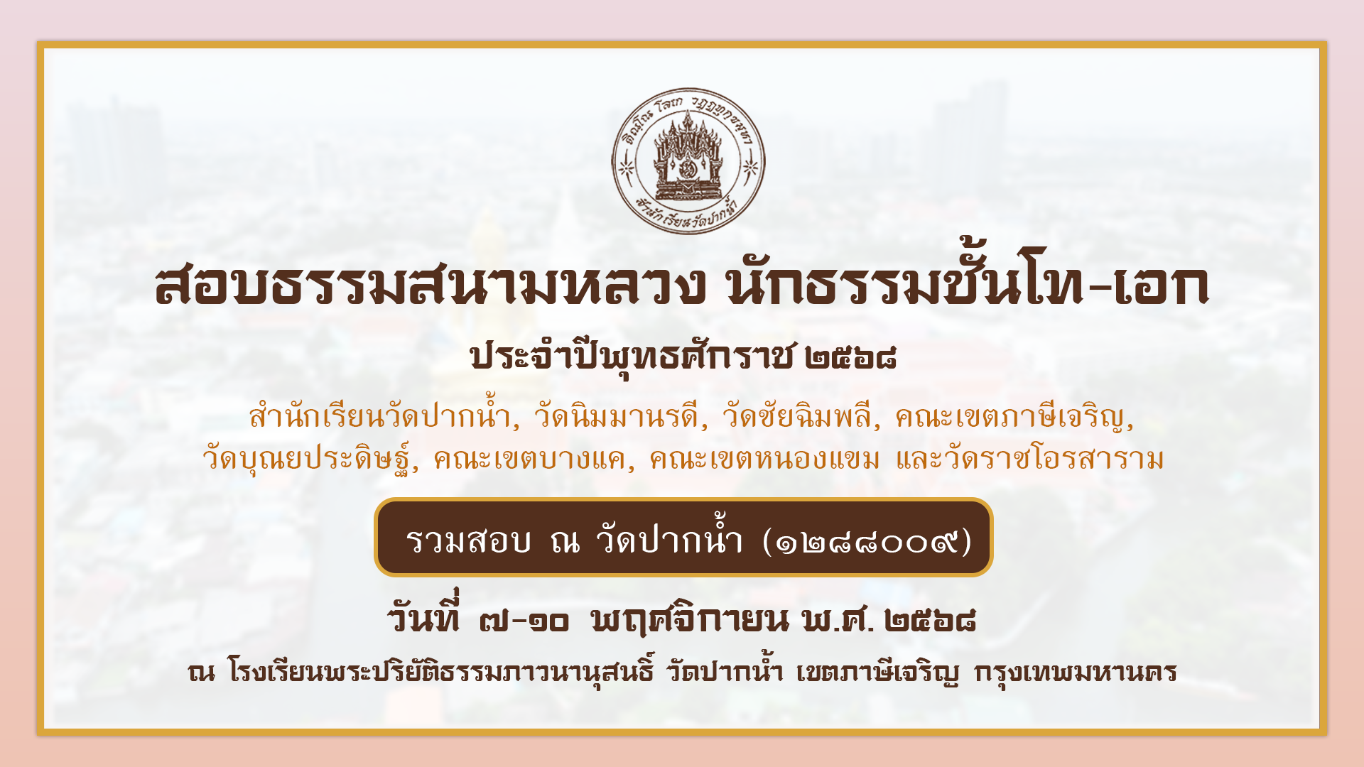 นักธรรมชั้นโท-เอก สำนักเรียนวัดปากน้ำ ประจำปี ๒๕๖๘