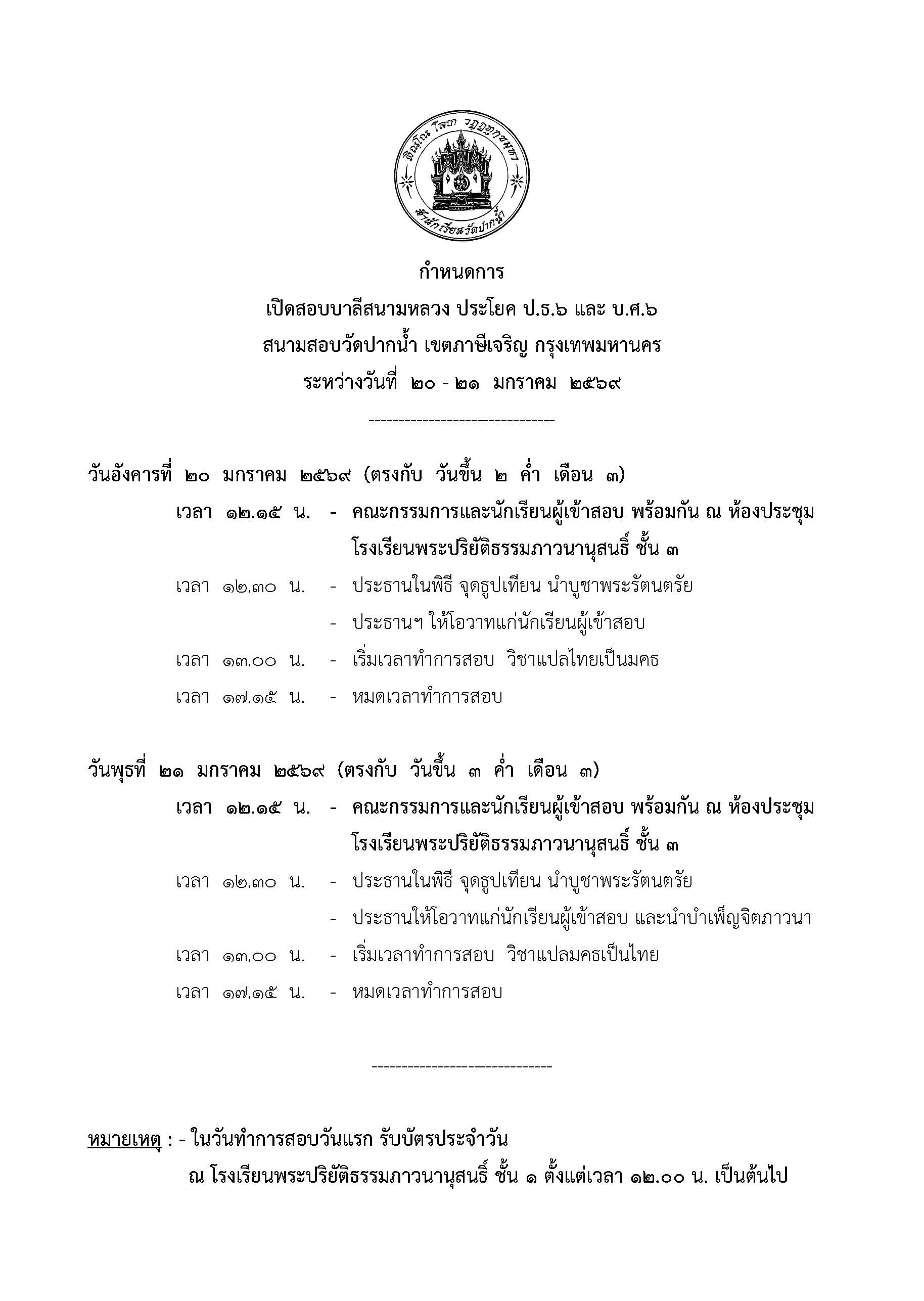 สอบบาลี ป.ธ./บ.ศ.๖ ประจำปี ๒๕๖๙