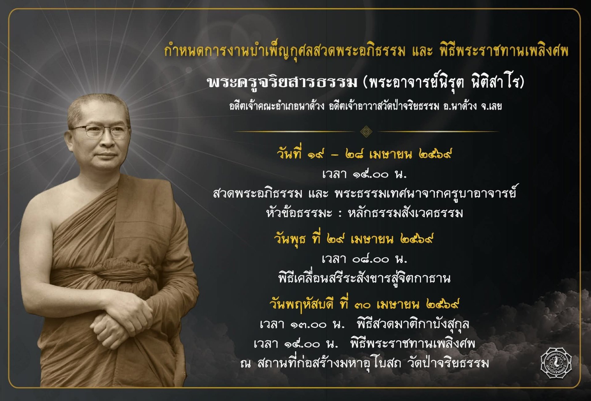 ร่วมบำเพ็ญกุศลศพ พระครูจริยสารธรรม